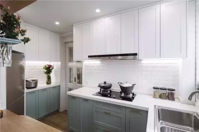 设计师还在橱柜中做了一个通风透气的菜篮子,其实厨房部分蔬菜水果不用存放在冰箱,这样的柜子就很方便。