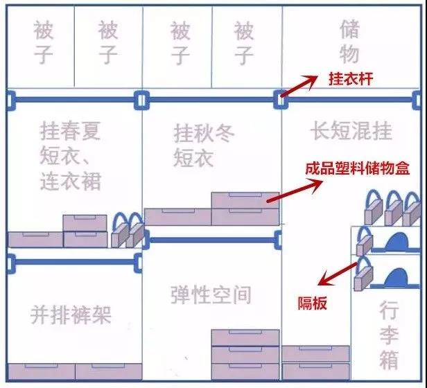 先给大家总结一下,一个布局合理的衣柜内部格局一定是:
